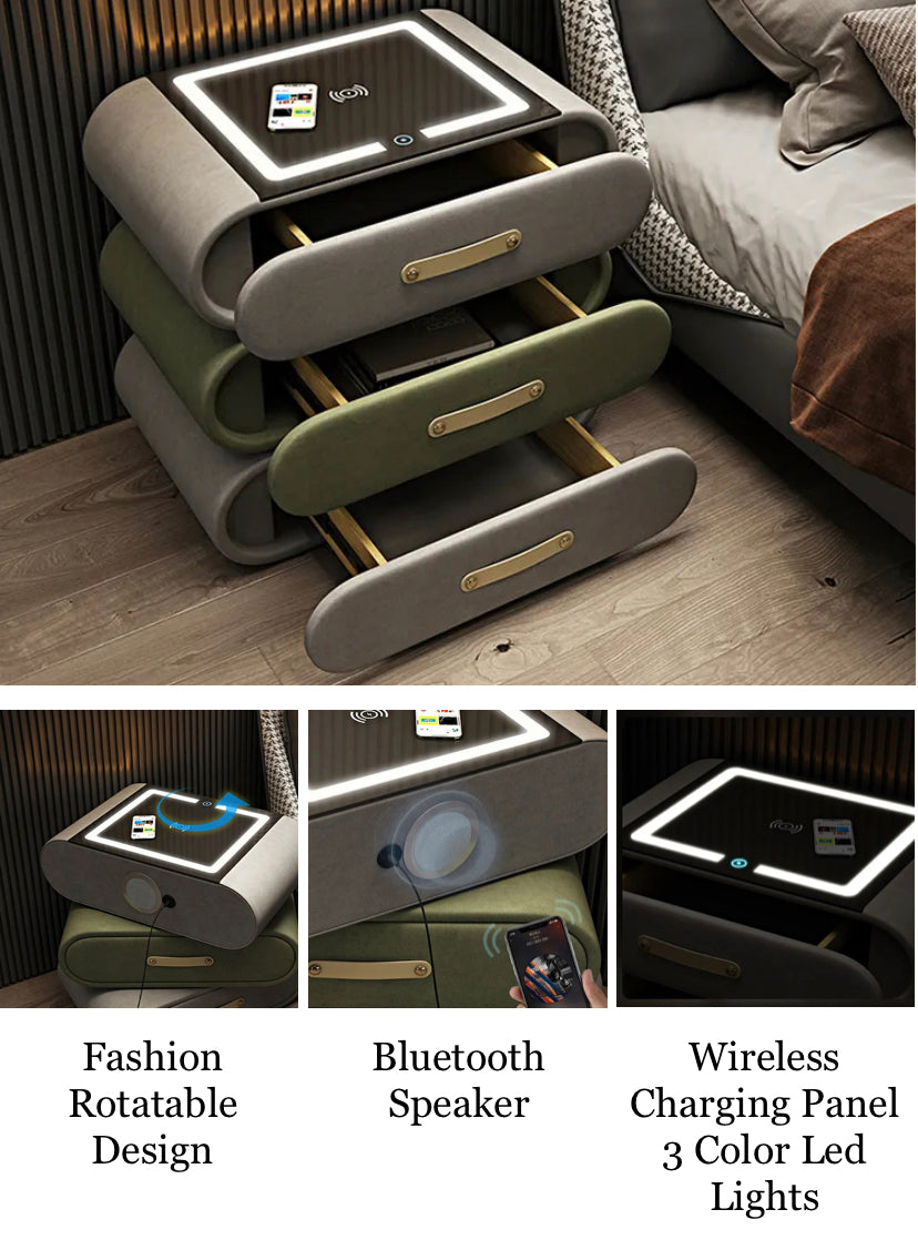 Nightstand Modern Charging Rotating Solid Eood Smart Bedside Table Light Luxury Bedside Cabinets