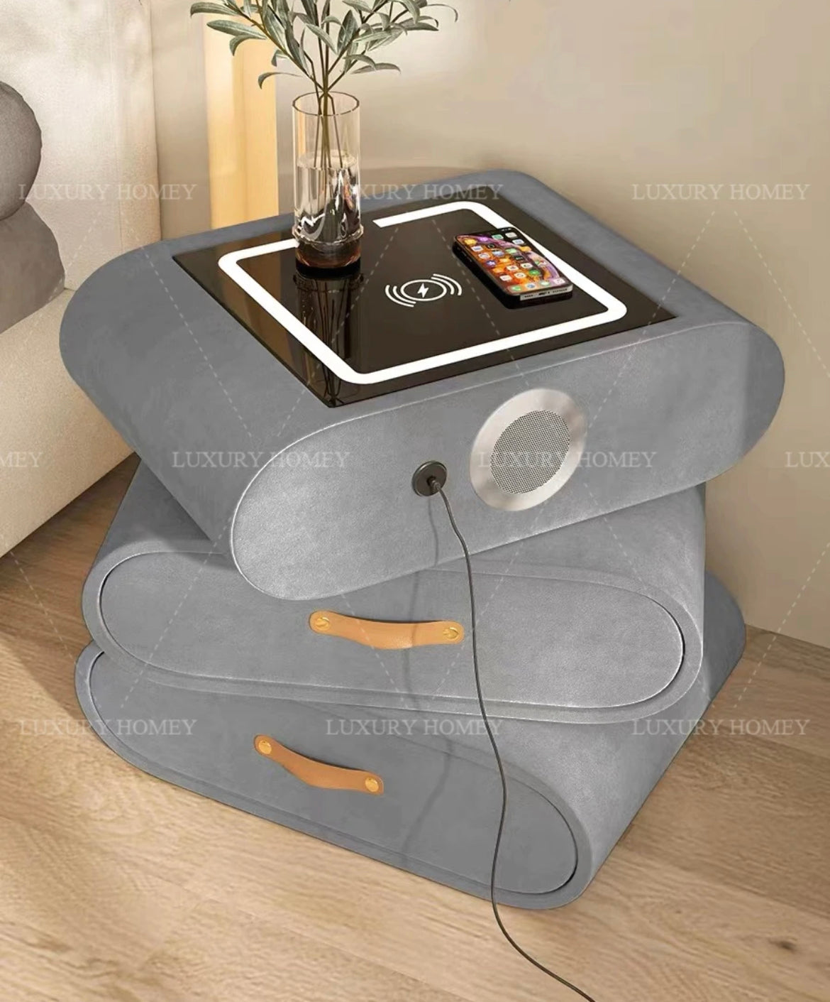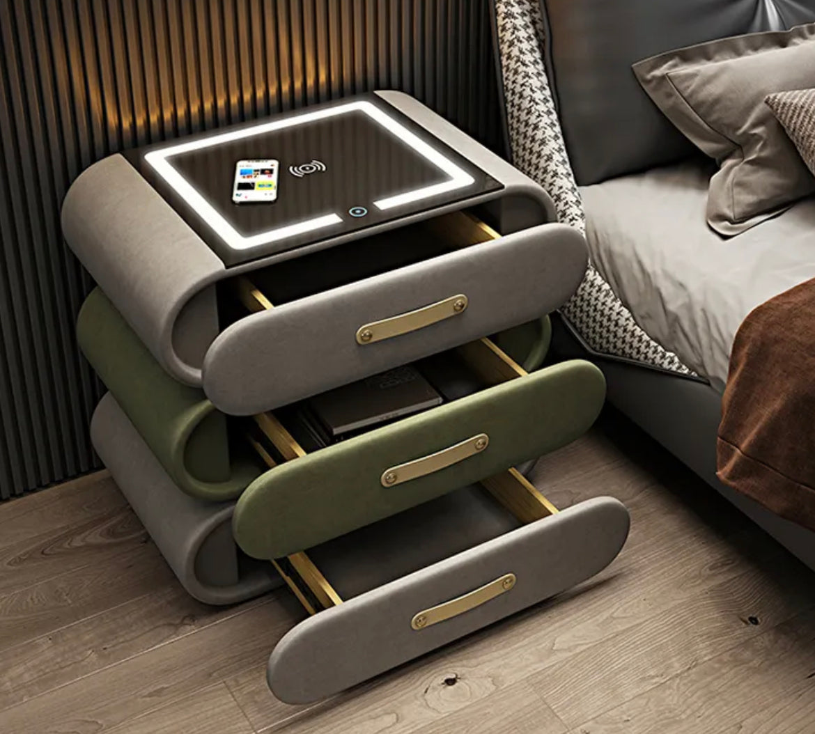 Our Nightstand/Bedside Cabinet is designed with modern luxury in mind. Expertly handmade from stainless steel and wood, this elegant piece of bedroom furniture features handy storage solutions, rotating technology, and built-in rapid-charging capabilities. Certified ISO9001 and shipped with protective packaging, this high-quality piece of furniture is sure to last for 3-5 years.