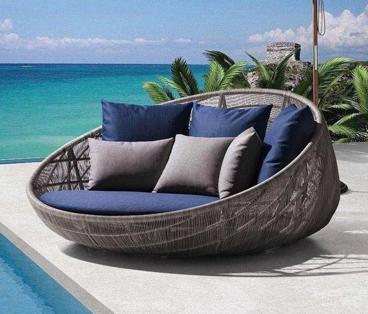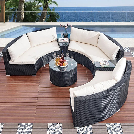 Outdoor Furniture Set Backyard Balcony Rattan Cane Wicker Round Shape Couch Set