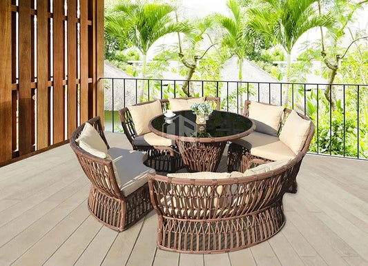 Outdoor Furniture Set Balcony Garden Leisure Round Rattan Sofa Couch