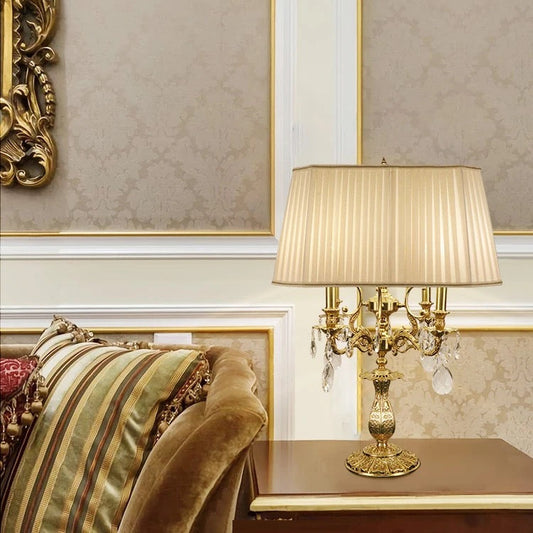 Table Lamp French Baroque Style Study Switch Control Brass And Crystal Table Lamps