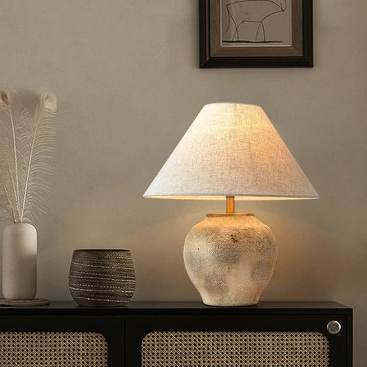 Table Lamp Handmade Clay Pot Retro Table Lights Deco Bedroom Ceramic Table Lamps