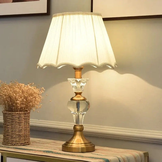 Table Lamp Cordless Fabric Shade Antique Nordic Design Crystal Lamp
