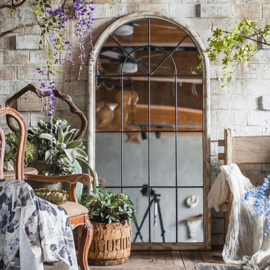 Farmhouse Rustic Living Room Mirror Wood Frame Arched Hanging Hallway Wall Mirrors