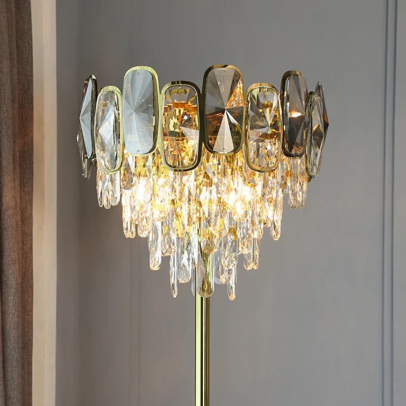 This Luxury Wall, Table and Floor Lamps from Talin Lighting is designed and assembled in Germany, making it an elegant, high quality addition to any living room or other space. Its modern design features gold crystal lights, a stainless steel and crystal lamp body, and a warm white light (3500K CCT). This lamp has an input voltage of 110-240V and is capable of 500 lm/w and 180 CRI light efficiency. It has a lifespan of 20,000 hrs and a 2-year warranty. With its unique gold crystal light and modern style, this lamp is the perfect choice for a modern living space.