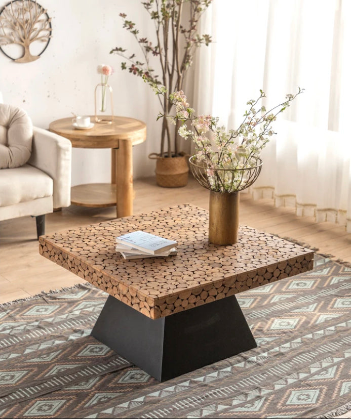 The European Style Accent Coffee Table combines Japanese craftsmanship with a luxurious wood and metal design. Its adjustable features and modern elegance make it a versatile centerpiece for any sophisticated interior.